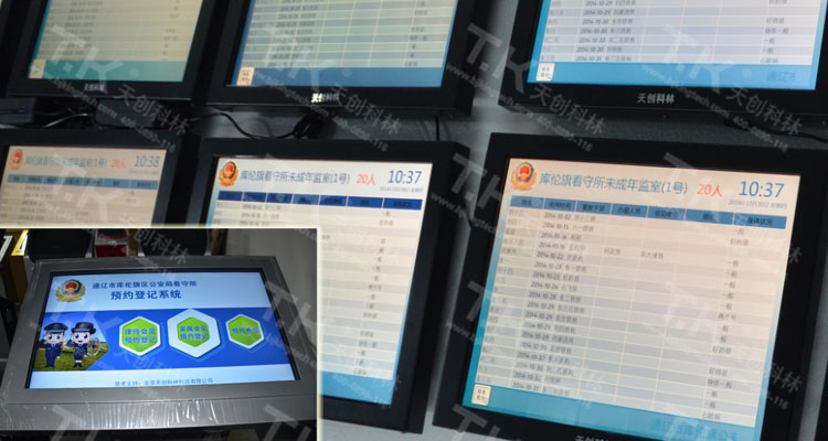 近期由天創(chuàng)科林公司為內蒙古通遼市庫倫旗區(qū)公安局看守所量身定制的觸摸屏版《在押人員約見和獄室信息發(fā)布管理系統(tǒng)》正式交付并投入使用。整個系統(tǒng)分為家屬接見區(qū)域的32寸大屏幕觸控一體機和位于各獄室外的17寸觸控一體機組成,充分實現信息實時共享,提高在押人員管理效率的同時突顯辦案的透明度。